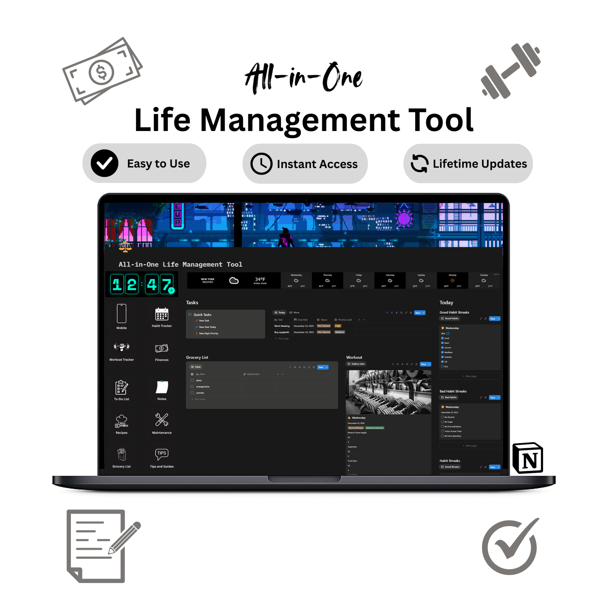- Say goodbye to juggling multiple apps. This powerful tool isn't just for managing workouts or finances. It's designed to streamline every aspect of your life. From daily tasks to long-term financial goals, everything is organized in one intuitive system.